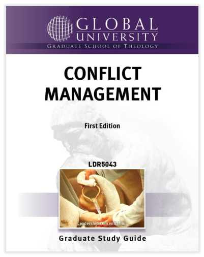 When you complete this course you should be able to: 1.Describe an operational model of conflict that includes a definition, conflict, types, dimensions, territories, protective behaviors, and results.2.Develop a personal theology of conflict.3.Analyze conflict sociologically using diagnostic tools such as the conflict cycle, family system theory, organizational structures, levels of conflict, trust, and communication.4.Identify the range of your own conflict management style and see its impact on yourself, your relationships, and the organizations you serve.5.Evaluate methods for the management of cross-cultural differences in church congregations and Christian organizations.6.Describe the role and stages of conflict and the roles of spiritual disciplines, faith practices, and symbols in helping church leaders to resolve and manage conflict.7.Design a plan for conflict intervention.
