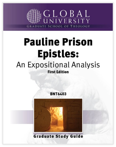 When you complete this course you should be able to: 1.Present a general introduction to the Prison Epistles, including authorship, the Christian audience, purpose, date, literary structure, and main theological arguments.2.Explain the basic purpose of each letter, emphasizing how Paul applies the gospel to pastoral circumstances and demonstrates how theology is to work in the church.3.State what the essential essence of the gospel is according to the Prison Epistles, highlighting what has been made available through faith in Christ and rooting your explanation of the saving power of Christ in His death and resurrection as particularly reflected in these letters.4.Describe the social and theological dynamics present in the churches to which the Prison Epistles were sent. Some of the church problems may seem more sociological than theological, but they all have theological roots in one way or another and reflect different worldviews that prompted Paul to question and critique them from his theological perspective.5.Apply, in light of the historical meaning of the biblical text, Paul’s theological teachings and ethical admonitions within the contemporary context of your teaching and preaching and avoid confusing the two worlds, Paul’s and ours. Do this with the assurance that the Bible is normative for faith and practice for God’s people today.6.Write a research paper based on careful analysis in which the major themes of the Prison Epistles are integrated, showing that the early Christians had problems with right thinking and right living and that Paul’s emphasis on the proper relationships within the Christian community and its relationship with the larger world.